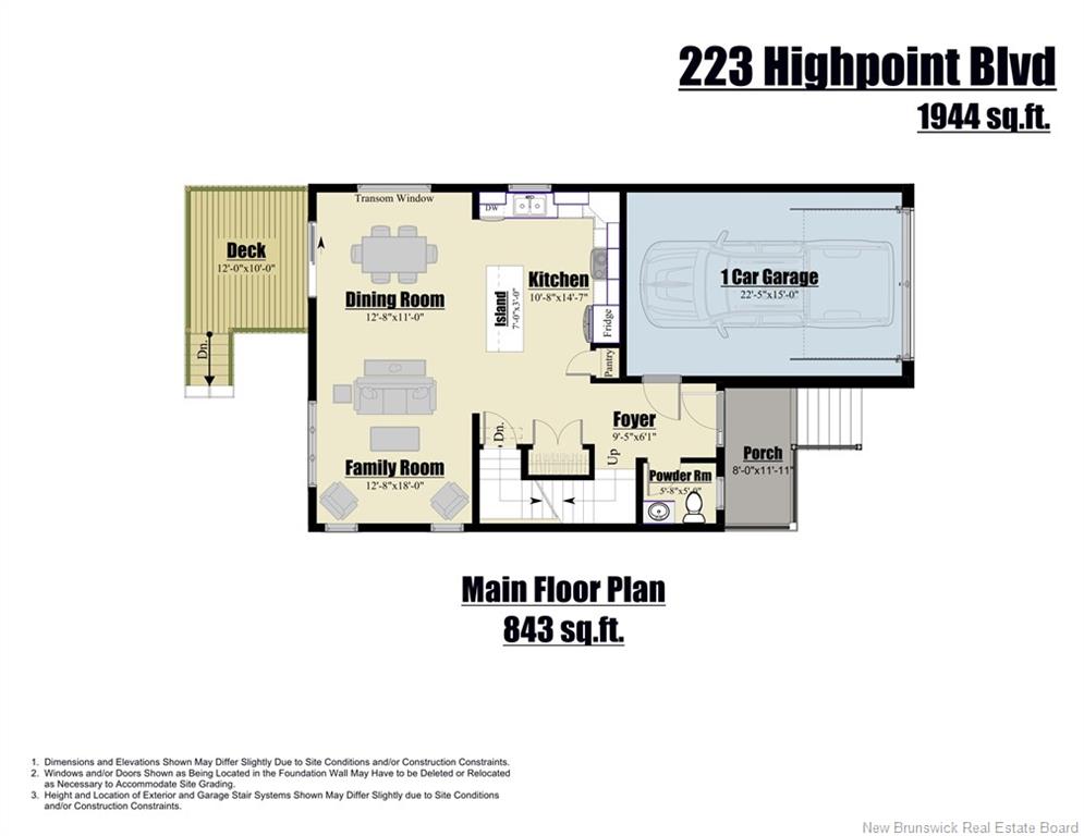 Currently under construction! Beautiful new construction in popular Highpoint Ridge Phase 7. Built by Colpitts Developments Ltd. Central location for easy access to uptown and downtown & excellent schools. Modern two storey home with 1944 Sq Ft of finished living space plus attached garage (22’5” x 15’0”). Amazing curb appeal with 3 bedrooms, 2.5 baths, open concept kitchen, dining & family room. Kitchen features gorgeous white kitchen, quartz countertop and large island. Just off the front foyer is a powder room with quartz countertop. Upper floor primary bedroom is huge as is the walk-in closet & spa-like ensuite with shower, double sink and linen closets. Two other good-sized bedrooms with double closets and a 3-piece main bath. For your convenience, the laundry room is also on this floor. Covered porch on front of this home. Sunny back deck (12’0” x 10’0”). This home is complete with a ductless mini split for heating and cooling. The basement level is unfinished with option to complete a bathroom, family room, 4th bedroom or storage room for an extra cost. Fully landscaped with a paved driveway. HST included in purchase price with rebate to vendor. 10 year Atlantic New Home Warranty included. Built by a MIKE HOLMES APPROVED BUILDER & CHBA-NB's BUILDER OF THE YEAR for 2015, 2017 and 2021. Room sizes are taken from plans and may vary slightly due to construction constraints.